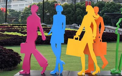 剪影雕塑,看的就是個(gè)輪廓!把你想做的東西(人、動(dòng)物、樹(shù)啊啥的),簡(jiǎn)化成影子形狀。材料選擇多:不銹鋼、耐候鋼(喜歡生銹那種質(zhì)感)、玻璃鋼、鍍鋅板、鐵板都成。最后還得靠噴漆,給它們打扮上顏色。