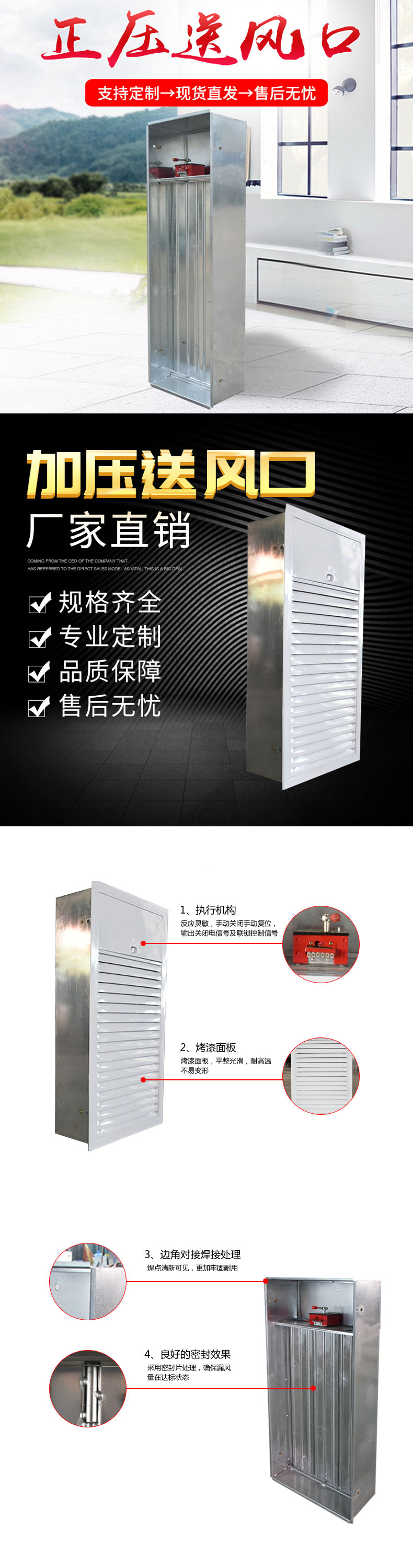 正壓送風(fēng)口是用于發(fā)生火災(zāi)時(shí)加壓送風(fēng),通過正壓送風(fēng)口會(huì)源源不斷的對(duì)前室進(jìn)行送風(fēng),使前室維持正壓,保證煙氣不會(huì)在這個(gè)區(qū)域蔓延,而給人逃生的空間的。