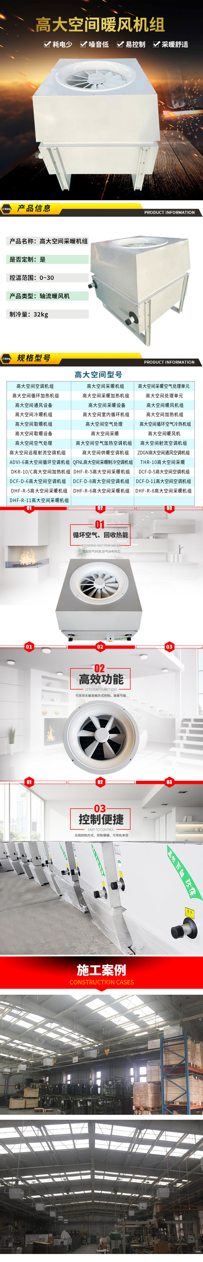 高大空間暖風(fēng)機(jī)是指采用離心式風(fēng)機(jī),其氣流射程長、風(fēng)速高、送風(fēng)量大、散熱量大,因而選用時可按集中送風(fēng)設(shè)計考慮,這類大型暖風(fēng)機(jī)是由地腳螺栓固定在地面的基礎(chǔ)上。