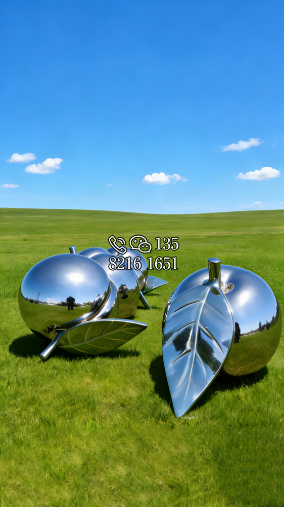 鏡面不銹鋼桃子雕塑 (3)