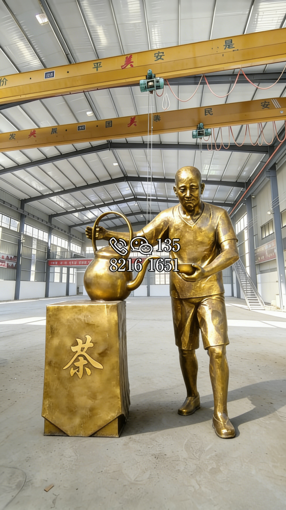 倒茶人物銅雕