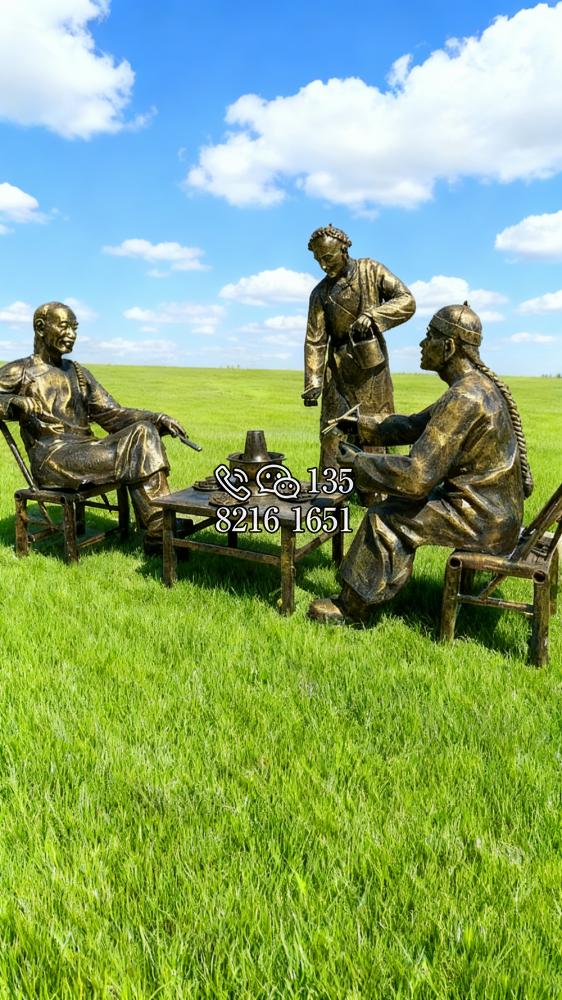玻璃鋼仿銅吃火鍋的人物雕塑 (2)