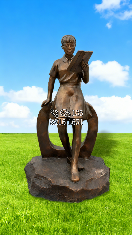 鍛銅看書女孩銅雕 (2)