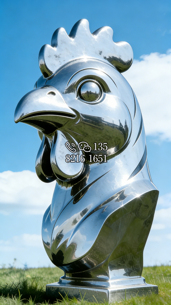 不銹鋼 鏡面 十二生肖 動物 公雞 雞頭 胸像