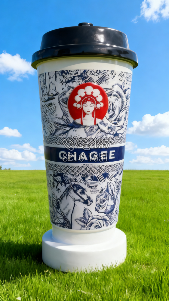玻璃鋼材質(zhì),仿陶罐,大型流水景觀雕塑??偢?米,頂部陶罐長1.26米,中間主體陶罐高4.1米,去除底部一圈陶罐和外部飄帶造型,內(nèi)置水管水泵,水被抽入頂部陶罐,再從陶罐口留出,形成水流源源不斷永遠(yuǎn)流不完的錯覺。