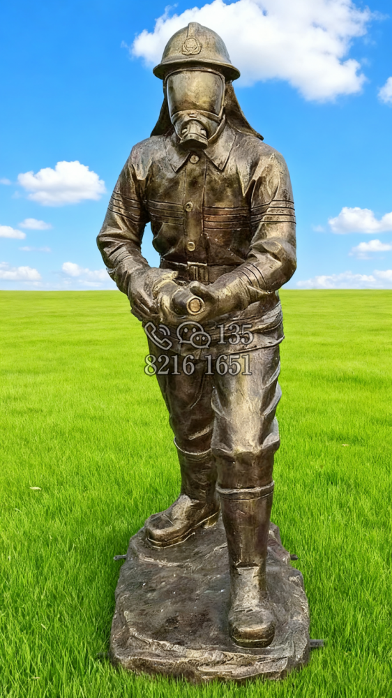 玻璃鋼仿銅消防員雕塑 (11)