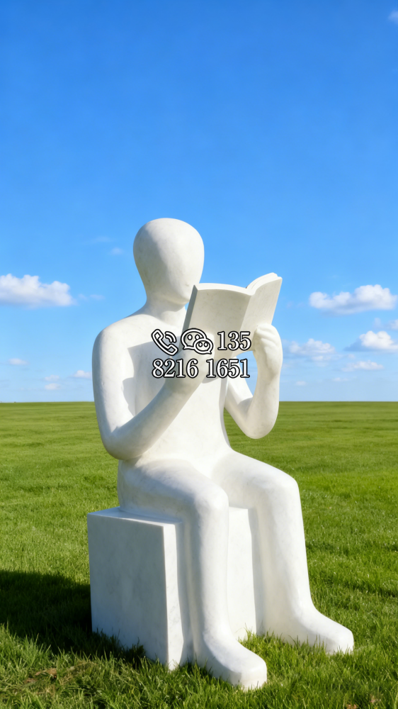坐地上看書的抽象玻璃鋼讀書人物雕塑