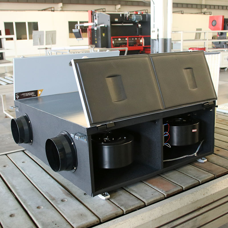 新風(fēng)換氣機是根據(jù)在密閉的室內(nèi)一側(cè)送風(fēng)另一側(cè)引風(fēng),則在室內(nèi)會形成“新風(fēng)流動場”的原理進行設(shè)計研制的。它依靠機械送風(fēng)、引風(fēng),強迫在系統(tǒng)內(nèi)形成新風(fēng)流動場。