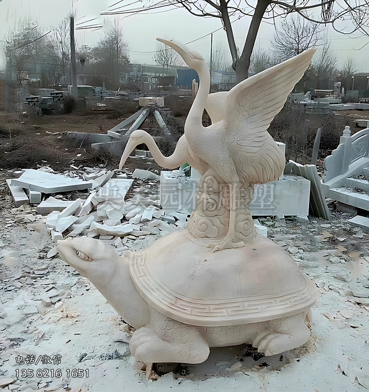 《龜鶴延年》石雕仙鶴烏龜?shù)袼?/h1>