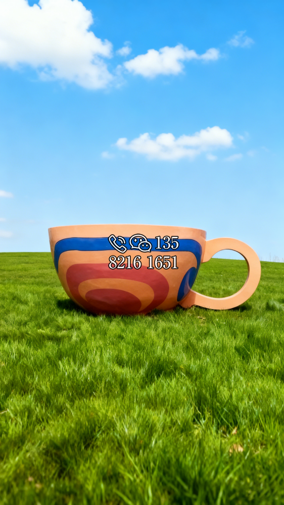 玻璃鋼材質(zhì),仿陶罐,大型流水景觀雕塑。總高6米,頂部陶罐長(zhǎng)1.26米,中間主體陶罐高4.1米,去除底部一圈陶罐和外部飄帶造型,內(nèi)置水管水泵,水被抽入頂部陶罐,再從陶罐口留出,形成水流源源不斷永遠(yuǎn)流不完的錯(cuò)覺。