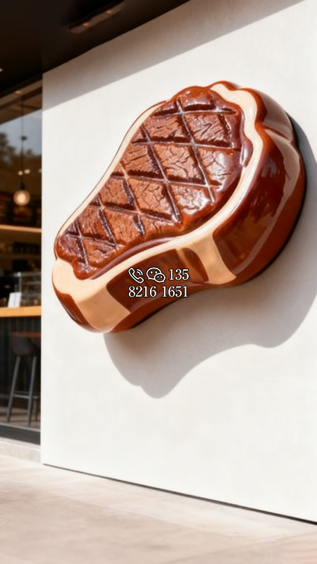 餐廳門頭造型,半透明,不發(fā)光,外部打光,長6米多,高近3米,進(jìn)深2米多。