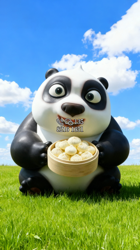 玻璃鋼端著小籠包的卡通熊貓雕塑