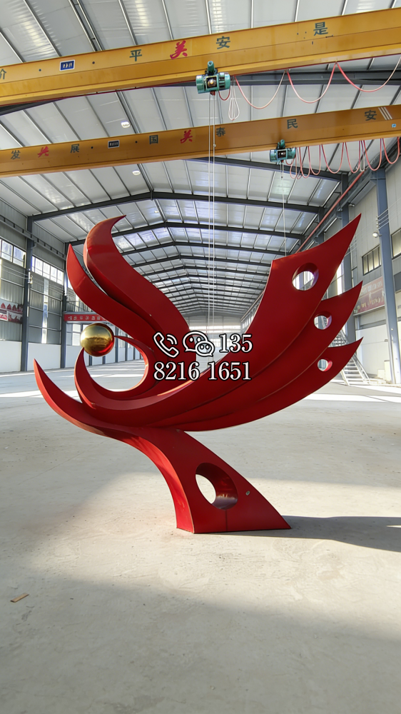 抽象不銹鋼鳳凰雕塑 (5)