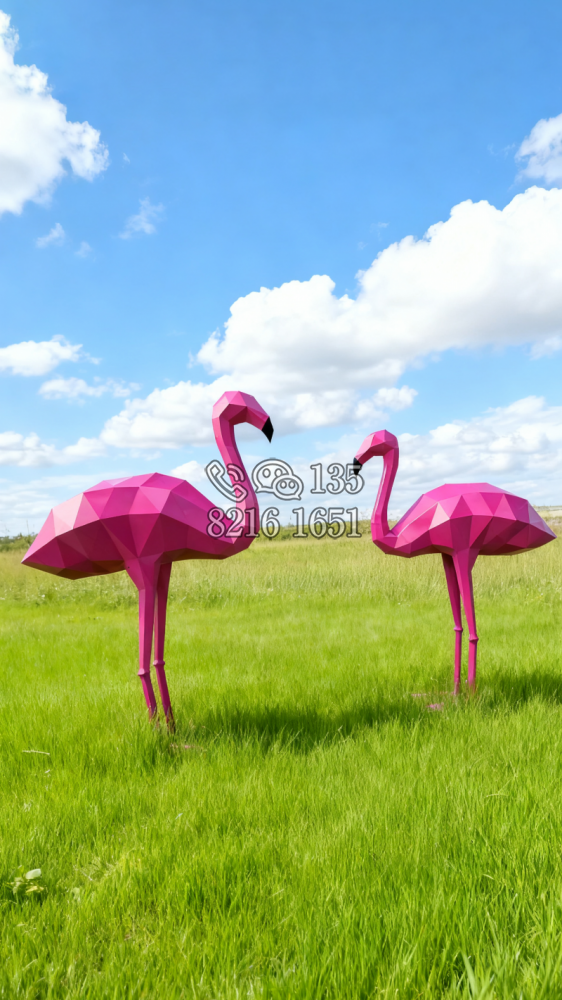 玻璃鋼幾何塊面火烈鳥雕塑 (2)