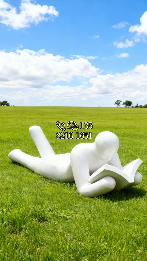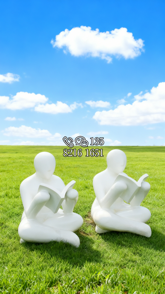 坐地上看書的抽象玻璃鋼讀書人物雕塑