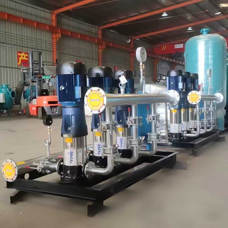 恒壓變頻供水設(shè)備是一種多功能的供水設(shè)備,該設(shè)備采用變頻調(diào)速技術(shù)和專用工控機技術(shù)對供水系統(tǒng)中的水泵機組進行閉環(huán)控制。根據(jù)供水系統(tǒng)中流量的瞬時變化值與相應(yīng)的壓力值等參數(shù),經(jīng)工控機的模擬量橫塊處理后,控制變頻調(diào)速器自動調(diào)節(jié)水泵轉(zhuǎn)速,控制水泵啟動臺數(shù)、使供水管網(wǎng)中保持設(shè)定的恒壓滿足節(jié)能供水要求。